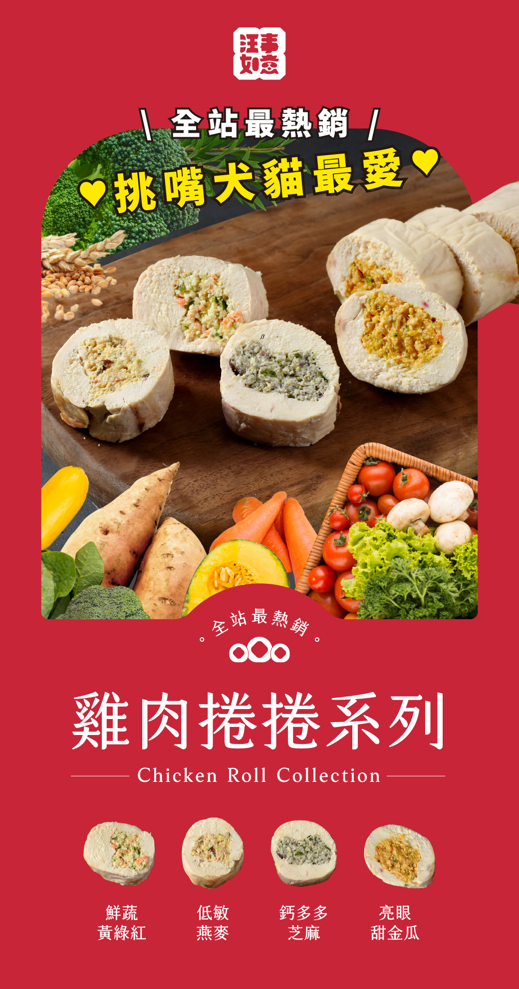 【雞肉捲捲 鈣多多芝麻】挑嘴最愛!整塊雞胸包蔬菜,無油蒸煮切片製成|100g(每包約有厚厚四大塊)寵物貓狗鮮食