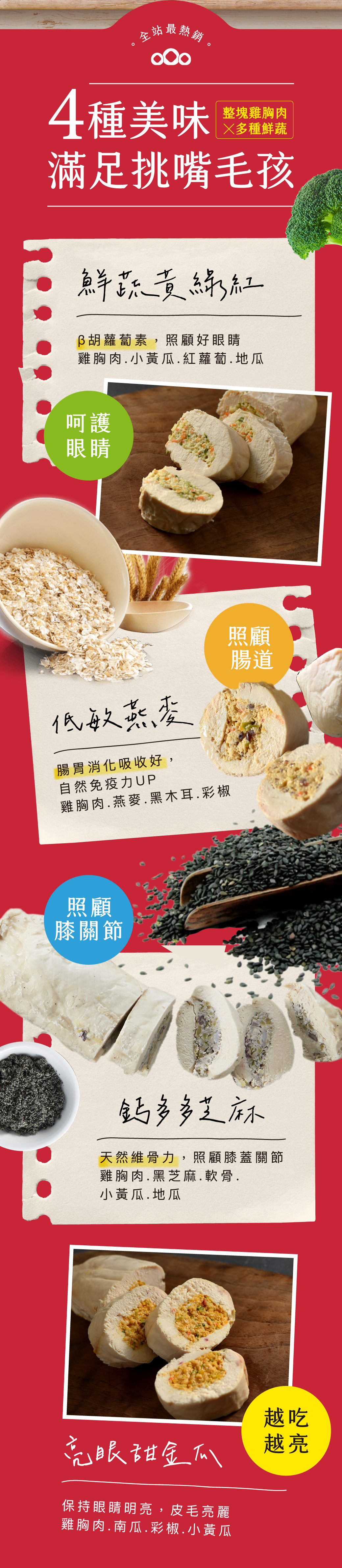豪邁大器使用整塊雞胸原肉,包裹蔬菜無油蒸煮,保留如滴雞精般的鮮甜美味,每包有厚厚四大塊,混飼料OK!