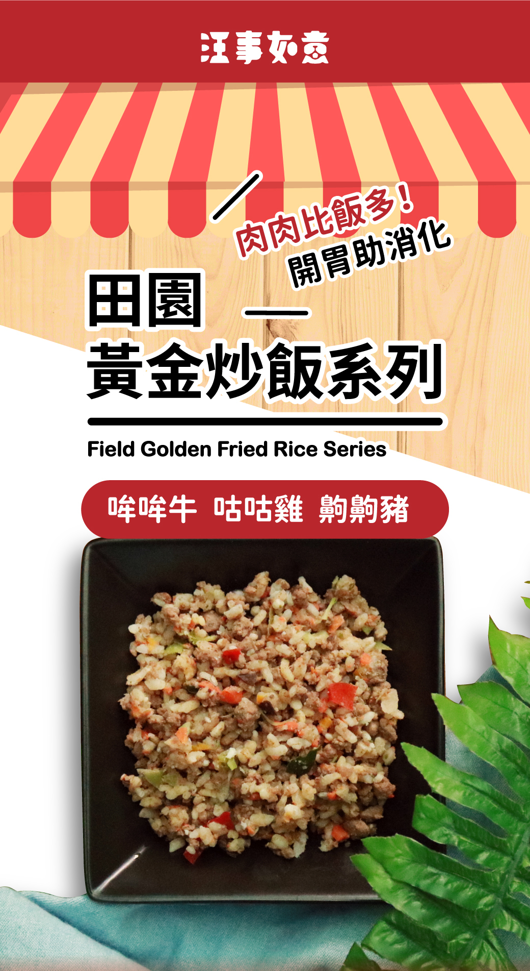 黃金炒飯肉肉比飯多!雞胸X去皮雞腿X五色蔬菜X台灣好米,清炒而成!無調味!無添加多餘的油脂,炒鍋香氣,毛孩愛不釋口!