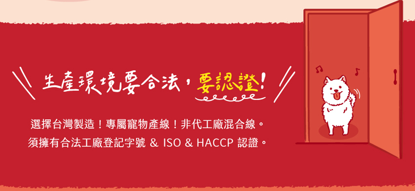 耗資千萬食品廠,獨家恆溫乾燥設備,寵物專屬產線 。